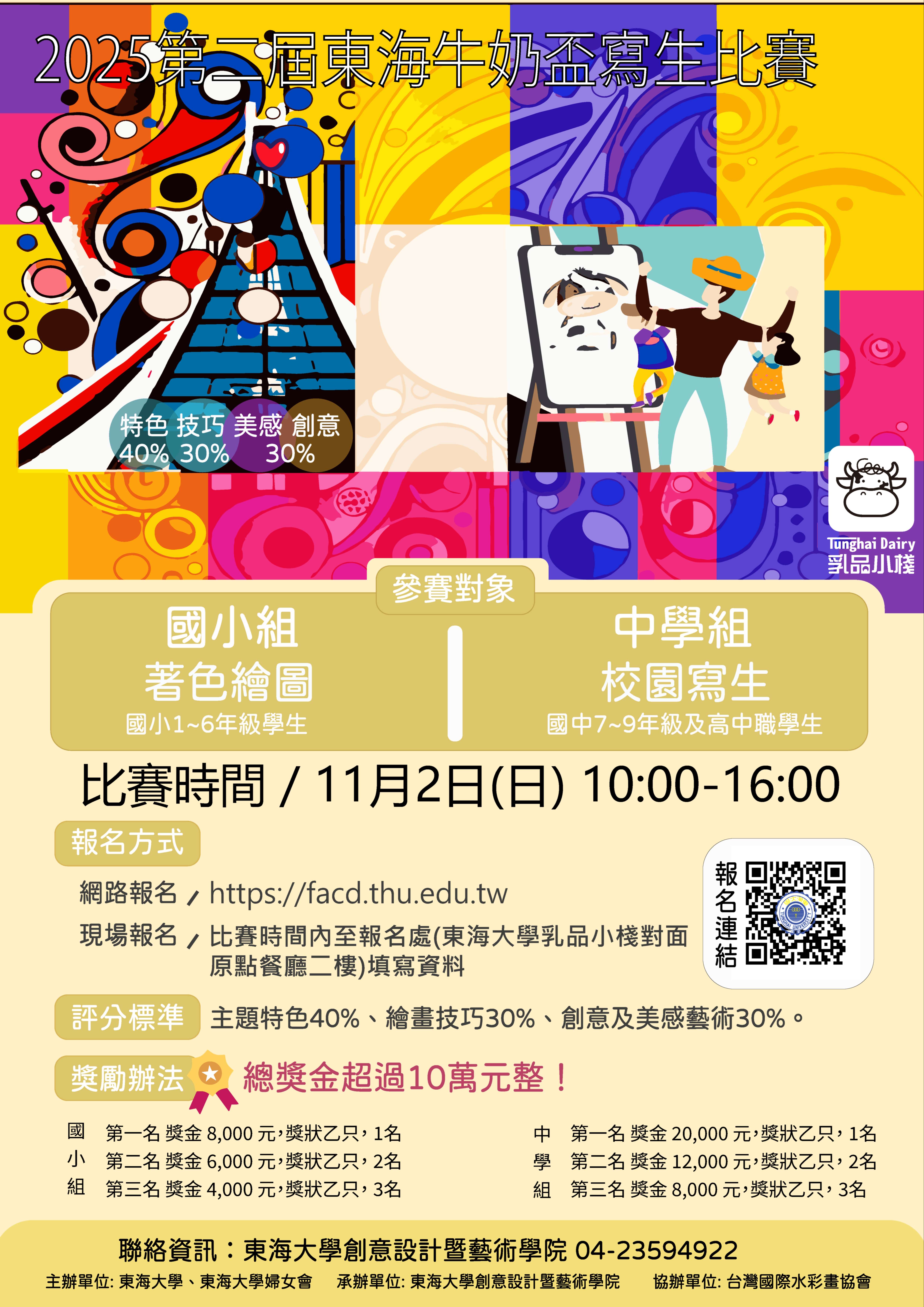 轉知: 東海大學舉辦「2025第二屆東海牛奶盃」寫生比賽活動海報。