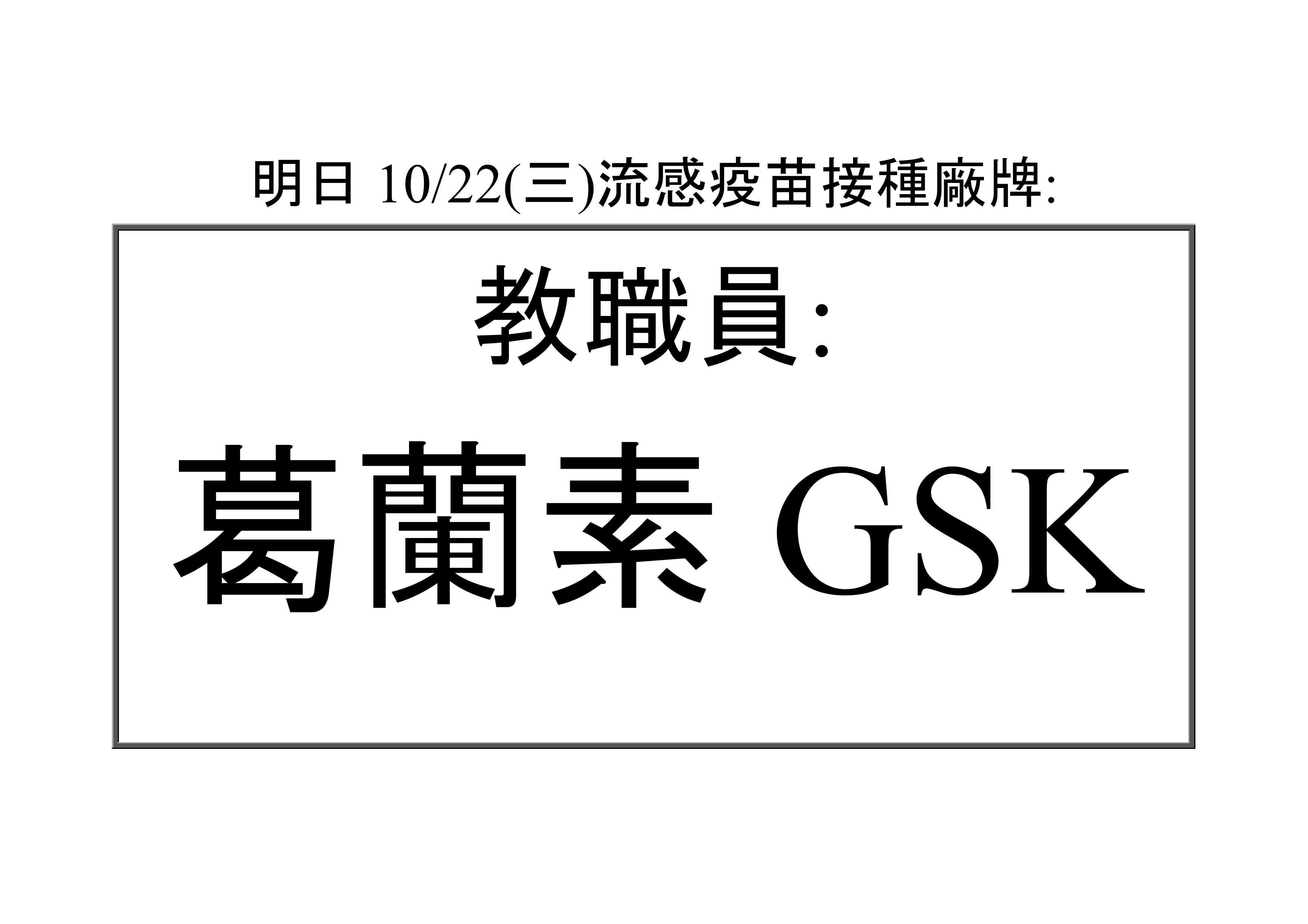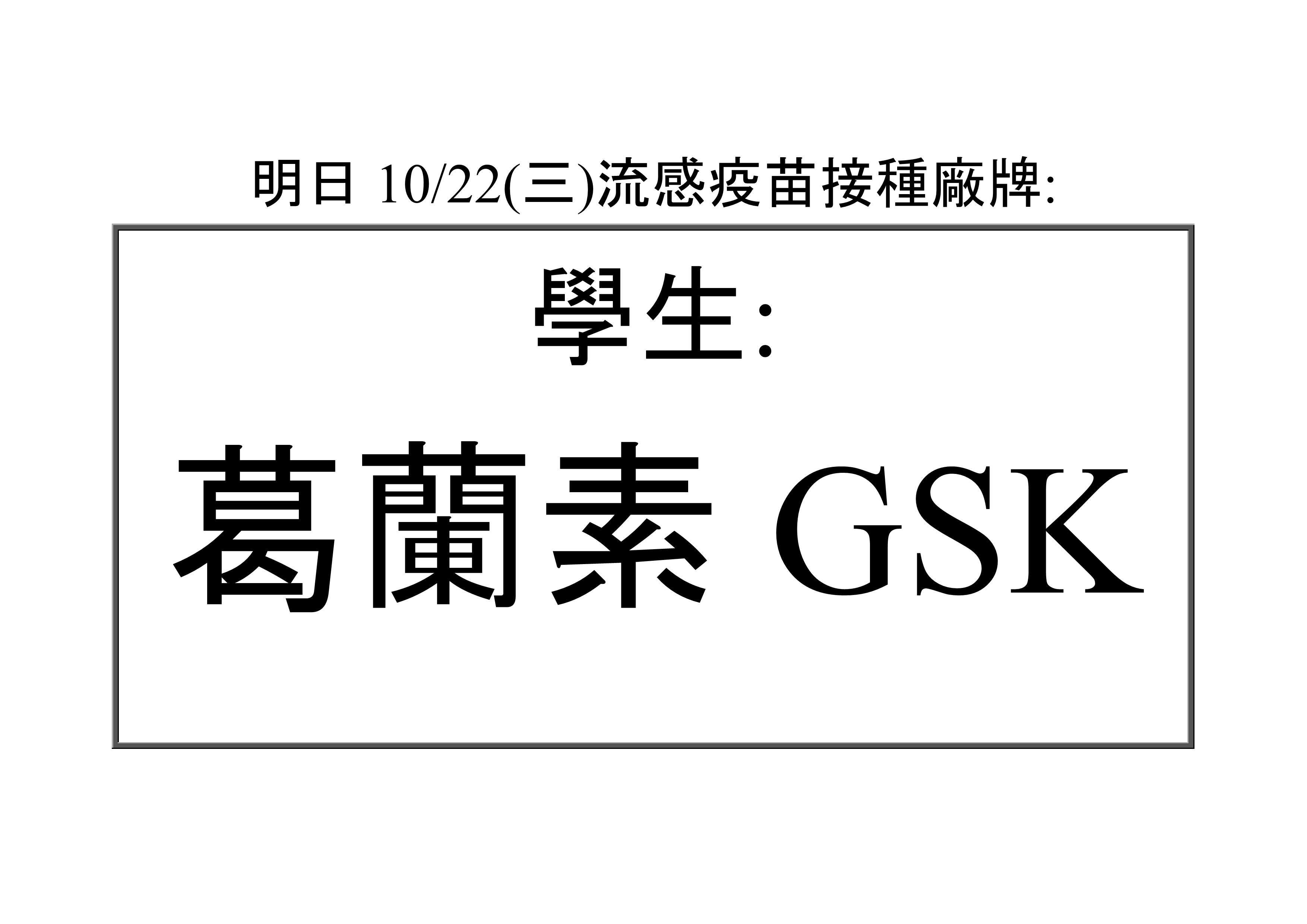 * 公告10/22(三)校園接種流感疫苗廠牌: