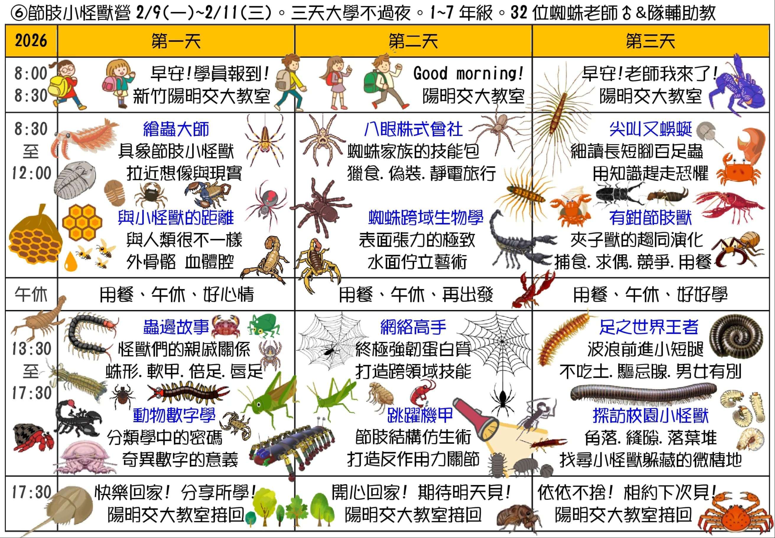 說明: 愛上大自然文教將於115年寒假辦理【大樹聚 島航去】2026生態素養冬令營共七個梯次,暨參展2026第七屆臺灣國際昆蟲博覽會活動。