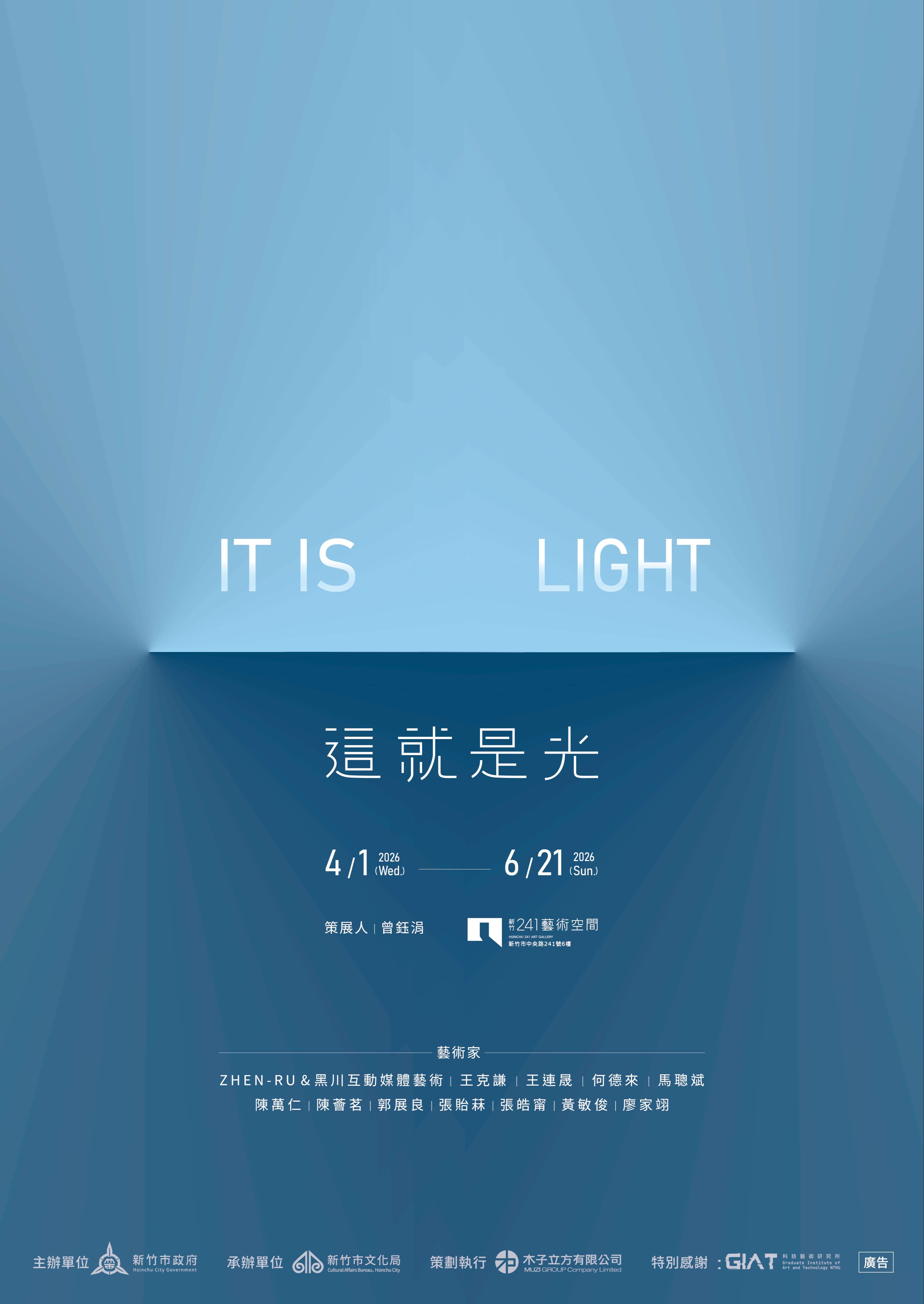 主旨: 檢送新竹市文化局辦理《IT IS LIGHT 這就是光》展覽電子海報1份,請惠予協助於所屬網站公告周知,至紉公誼。